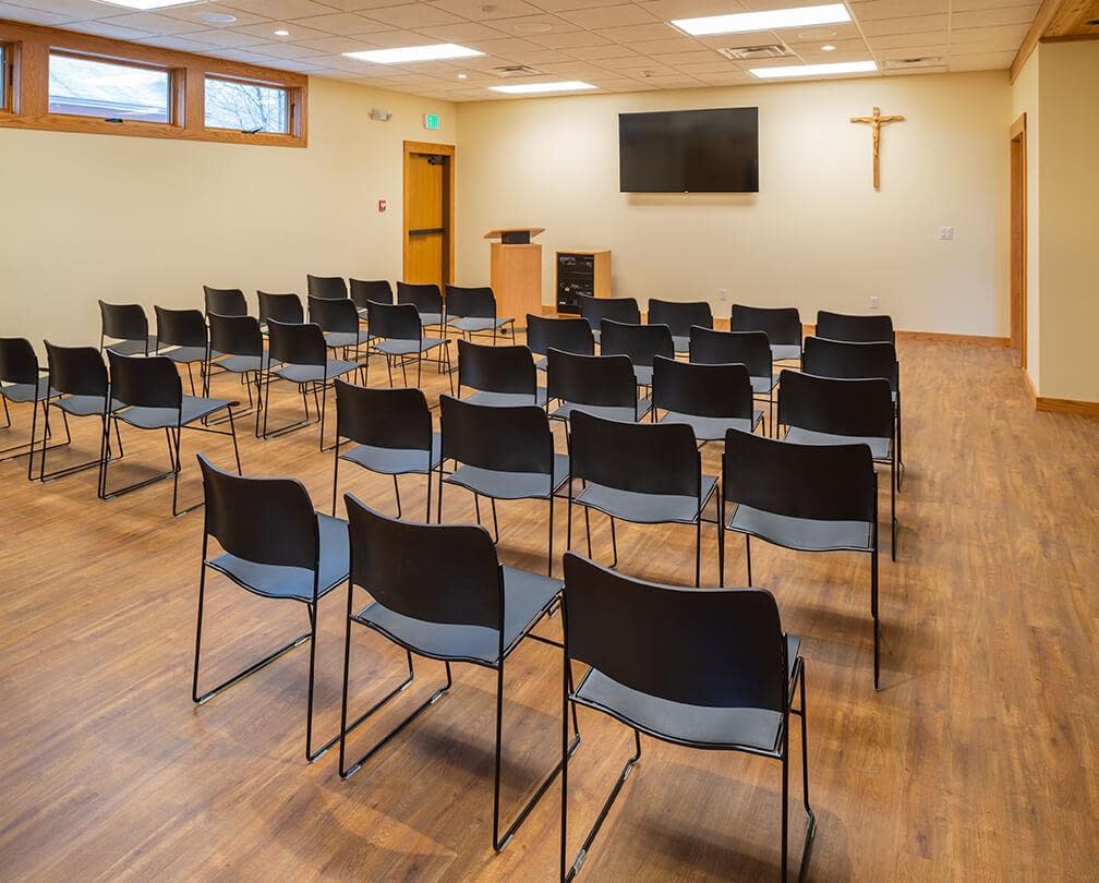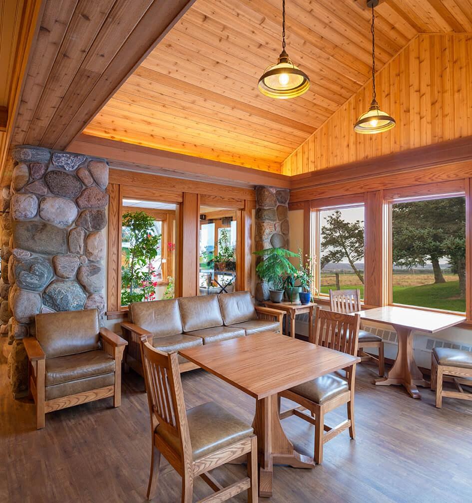 The current renovation was driven by the monks’ wish to separate the noisier functions of the bread store from the more sacred, contemplative areas such as the chapel and retreat areas. Heather DeMoras Design Consultants listened to these needs and helped create a new store, corridor connector, conference area, restrooms and retreat lobby that tied in to the existing aesthetic of the Abbey.