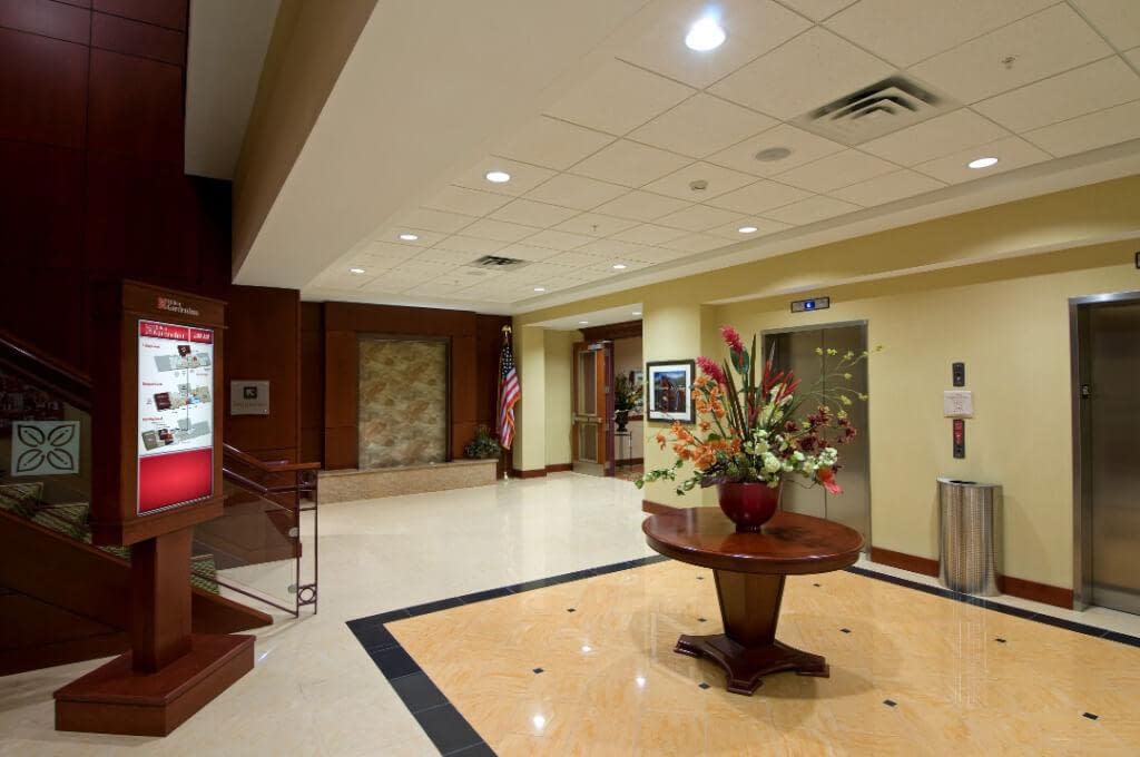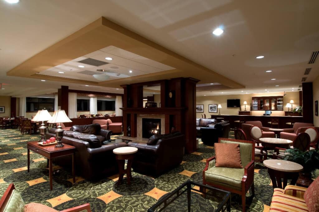 Built in two separate phases, the Hilton Garden Inn in Troy, NY consists of a 130-room hotel and the Rensselaer banquet and conference center with a 7,000 sq. ft. dividing banquet space, a 100-seat auditorium, several meeting rooms, a sports bar, restaurant, and other amenities. Heather DeMoras, CID was responsible for the interior design of the entire facility. Located near the Rensselaer Polytechnic Institute, the meeting facility has been used by the campus community and continues to be a prestigious meeting address for Troy and the surrounding area.