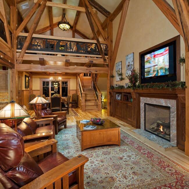 Chuck Smith, AIA, created the architectural design for the timber frame lodge which is situated next to a regional airport. Heather DeMoras Design Consultants was chosen to continue the owner’s vision through careful interior design and selection of finishes, furniture, lighting, built-ins, and accessories.